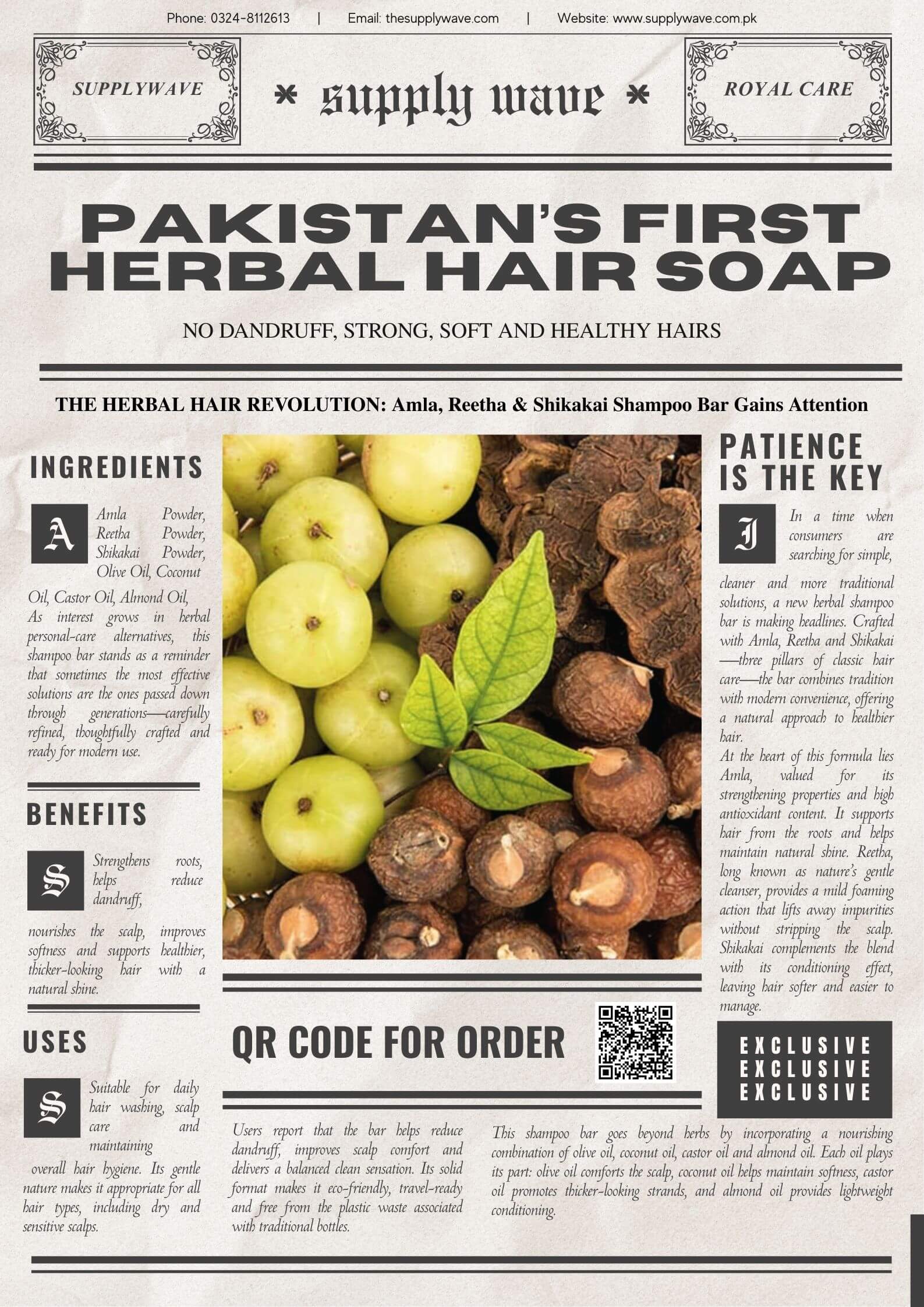 Experience a gentle, natural cleansing bar crafted with traditional herbal ingredients and nourishing oils. This shampoo bar combines the power of Amla, Reetha, and Shikakai with Olive, Coconut, Castor, and Almond oils to support healthier, stronger, and smoother hair.